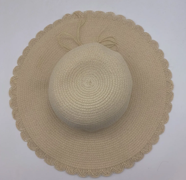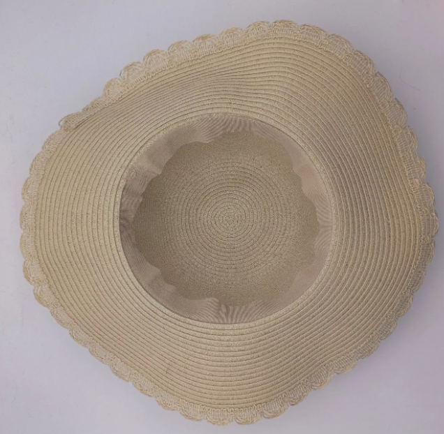 | Product Name | Plain flat top straw hat with wide brim and petal shaped edges | color | yellow |