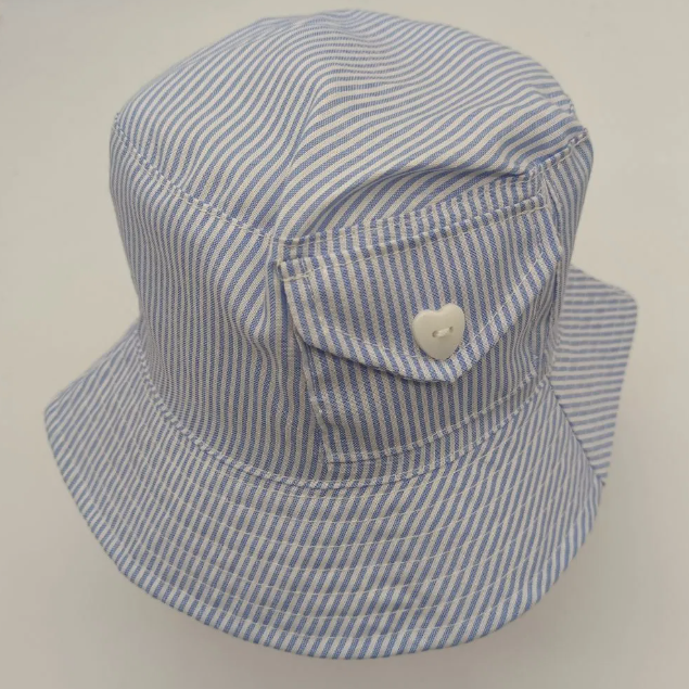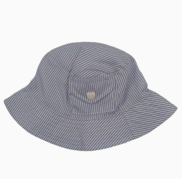| Product Name | Baby girl blue striped cotton basin hat with a small pocket and heart button decoration on the body | color | blue |